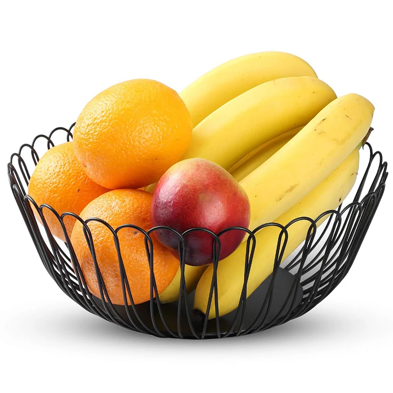 Creative Wire Fruit Dish Basket Bowl Modern Large Black Decorative Table Centerpiece Holder for Kit