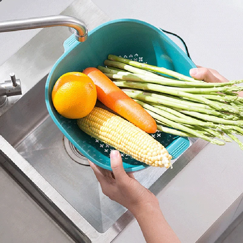 Plastic Vegetable Strainer with Handle Kitchen Colander Double Layered Fruit Drain Basket Strainer