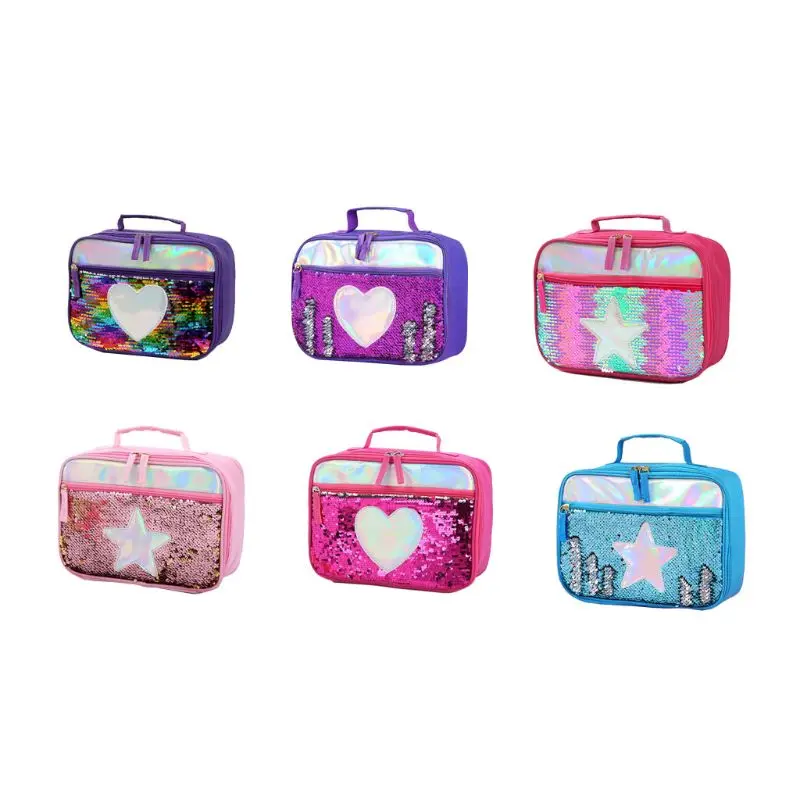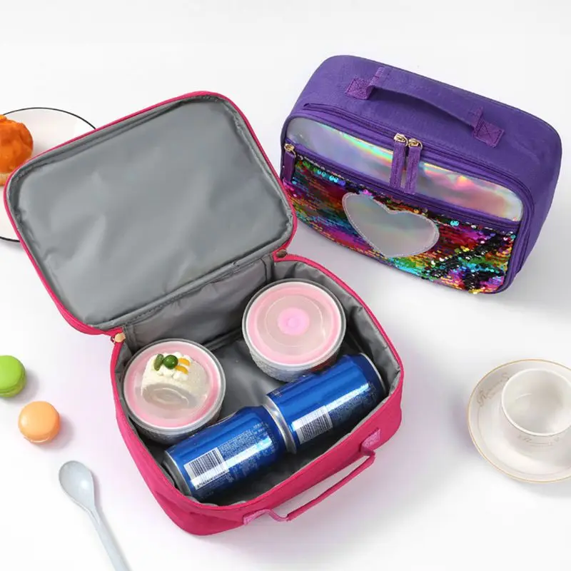 Flip Sequins Insulated Lunch Bag Thermal Cooler Picnic Food Box Tote Carry Bags