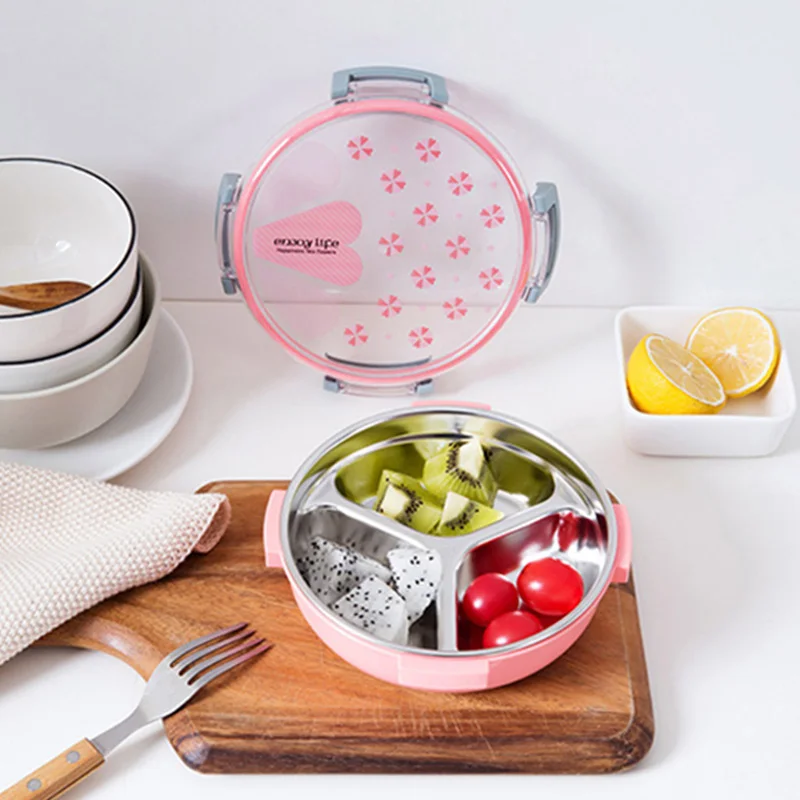Food Container Portable Lunch Box School Picnic Food Fruit 3 Grids Container Storage Box Healthy Pl
